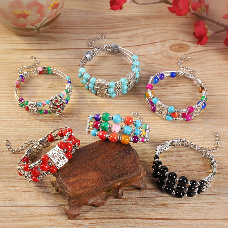 Wholesale handmade ethnic style colorful beads silver bohemian bracelet