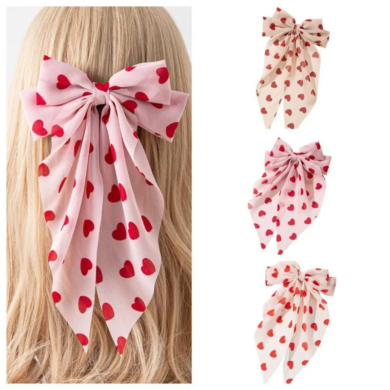 Wholesale Heart-shaped Print Bow Ribbon Spring Clip Valentine's Day Sweet Creative Hairpin