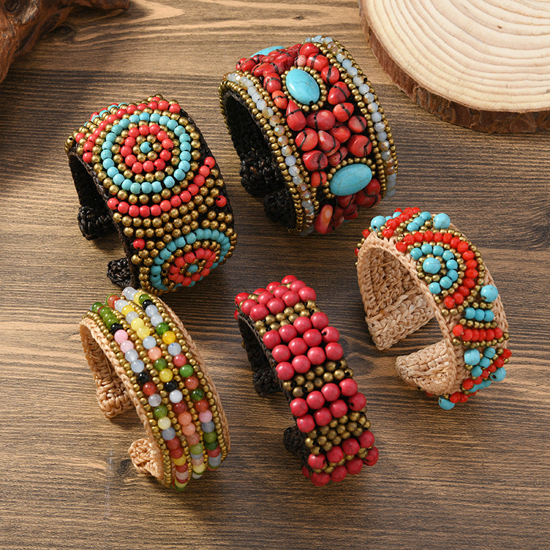 Wholesale Heavy weaving ethnic style natural stone bracelet Bohemian retro bracelet