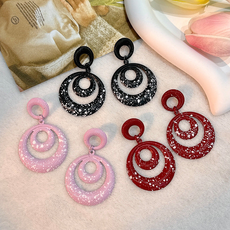 Wholesale Hot Sale Color Geometric Circle Earrings Women Alloy Spray Paint Exaggerated Earrings Fashion Creative Spot Earrings