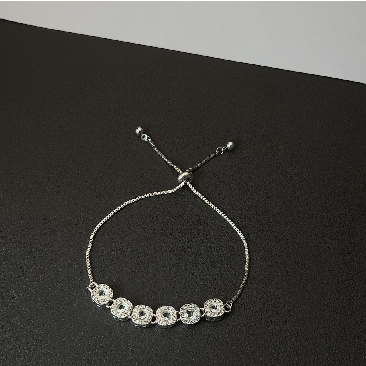 - Full Diamond Square Pull Bracelet-White Silver