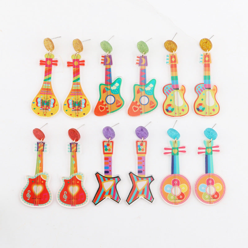 Wholesale 10pcs Music Festival Fashion Personality Rainbow Guitar Musical Instrument Earrings