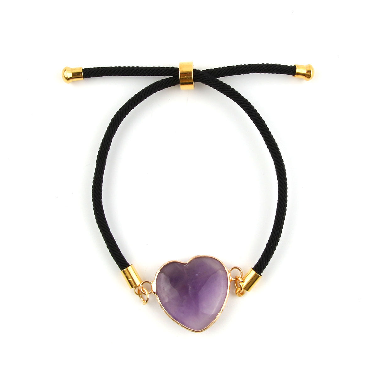 Wholesale Natural Stone Amethyst Heart-shaped Edge Adjustable Love Bracelet