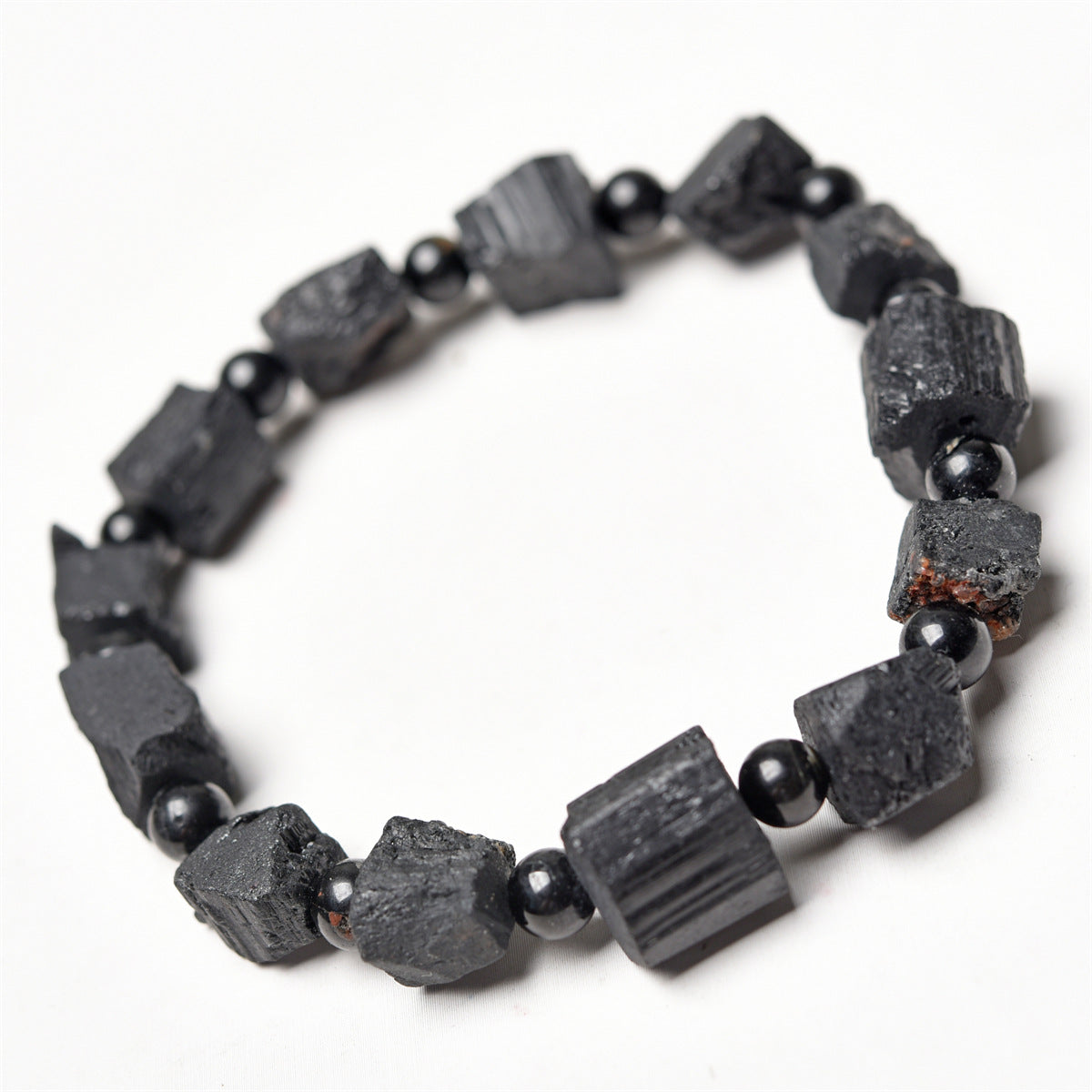 Wholesale Natural tourmaline crystal black tourmaline rough stone frosted single loop bracelet