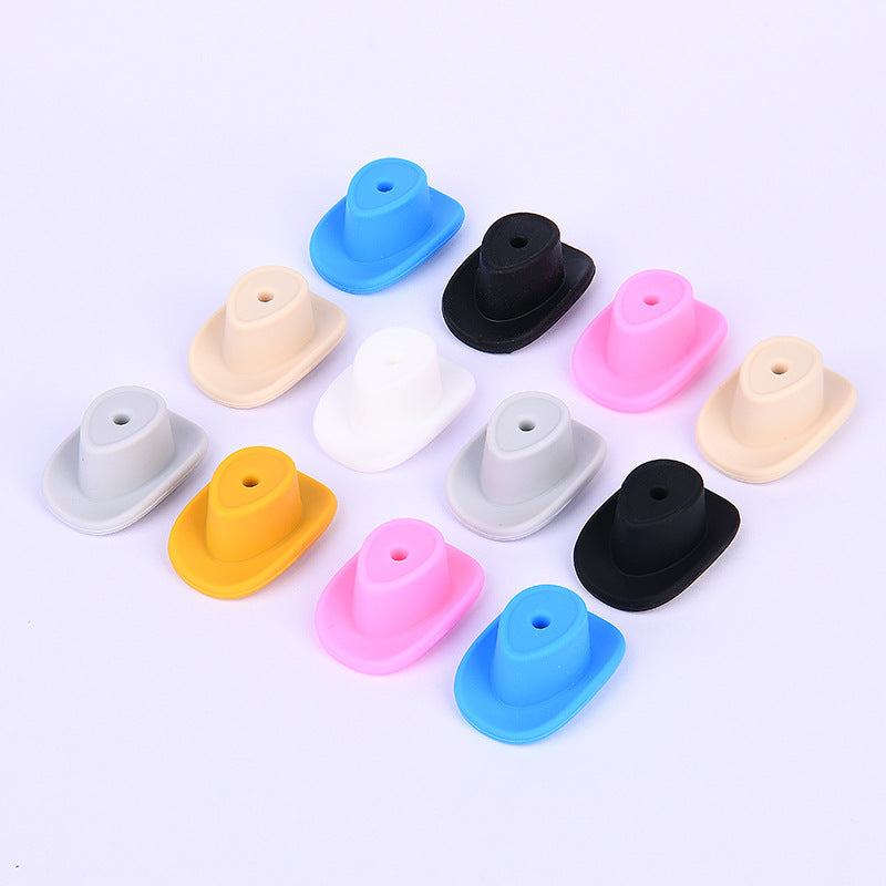 Wholesale 50pcs New cowboy hat silicone beads food grade baby tooth glue diy jewelry hat loose beads