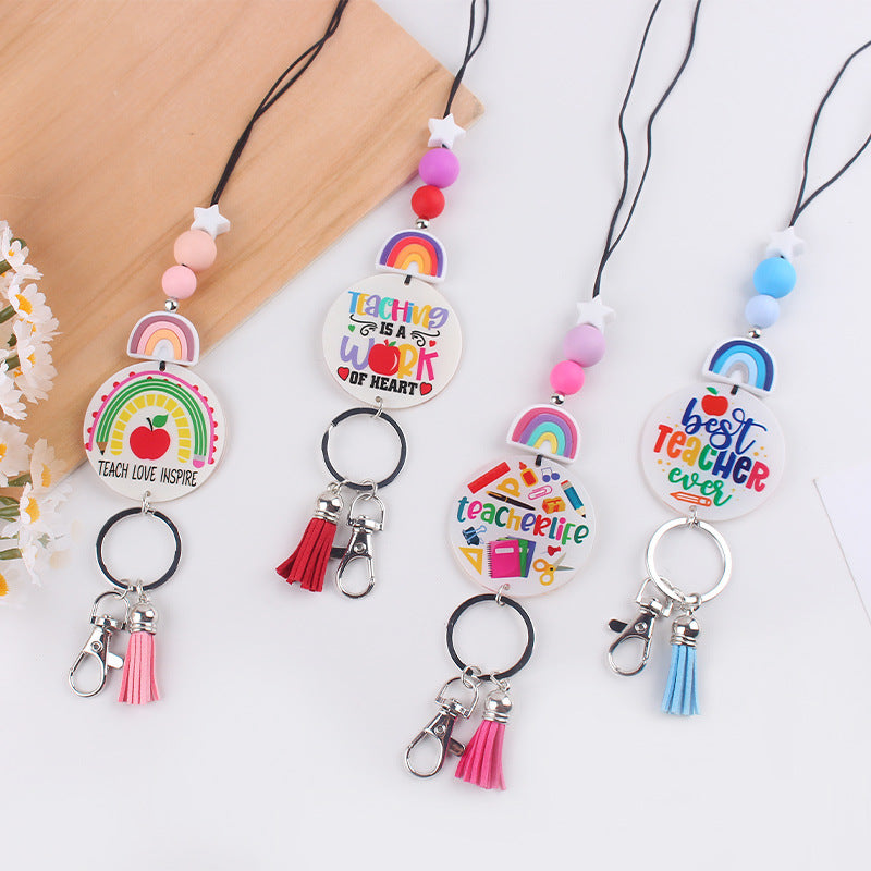 Wholesale Silicone Beaded Lanyard Certificate Necklace Key DIY acrylic sheet Keychain
