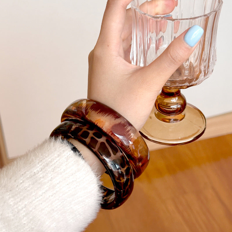 Wholesale New Resin Geometric Leopard Print Transparent Round Geometric Bracelet Stacked Wristband