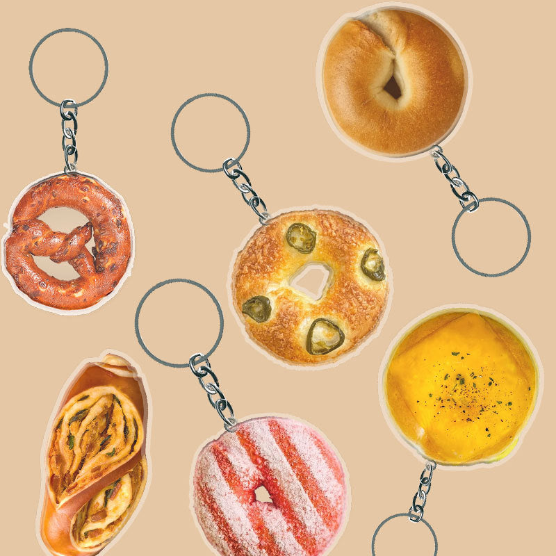 Wholesale New simulation bagels hand-made bread keychain creative acrylic jewelry bag pendant