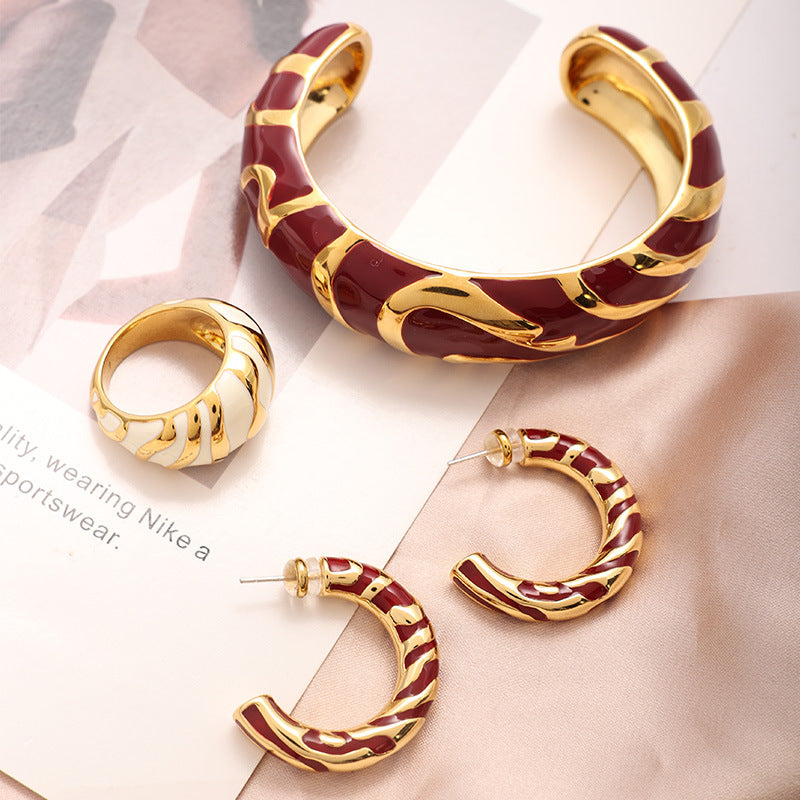 Wholesale Pattern Contrast Enamel Bracelet Irregular Ring