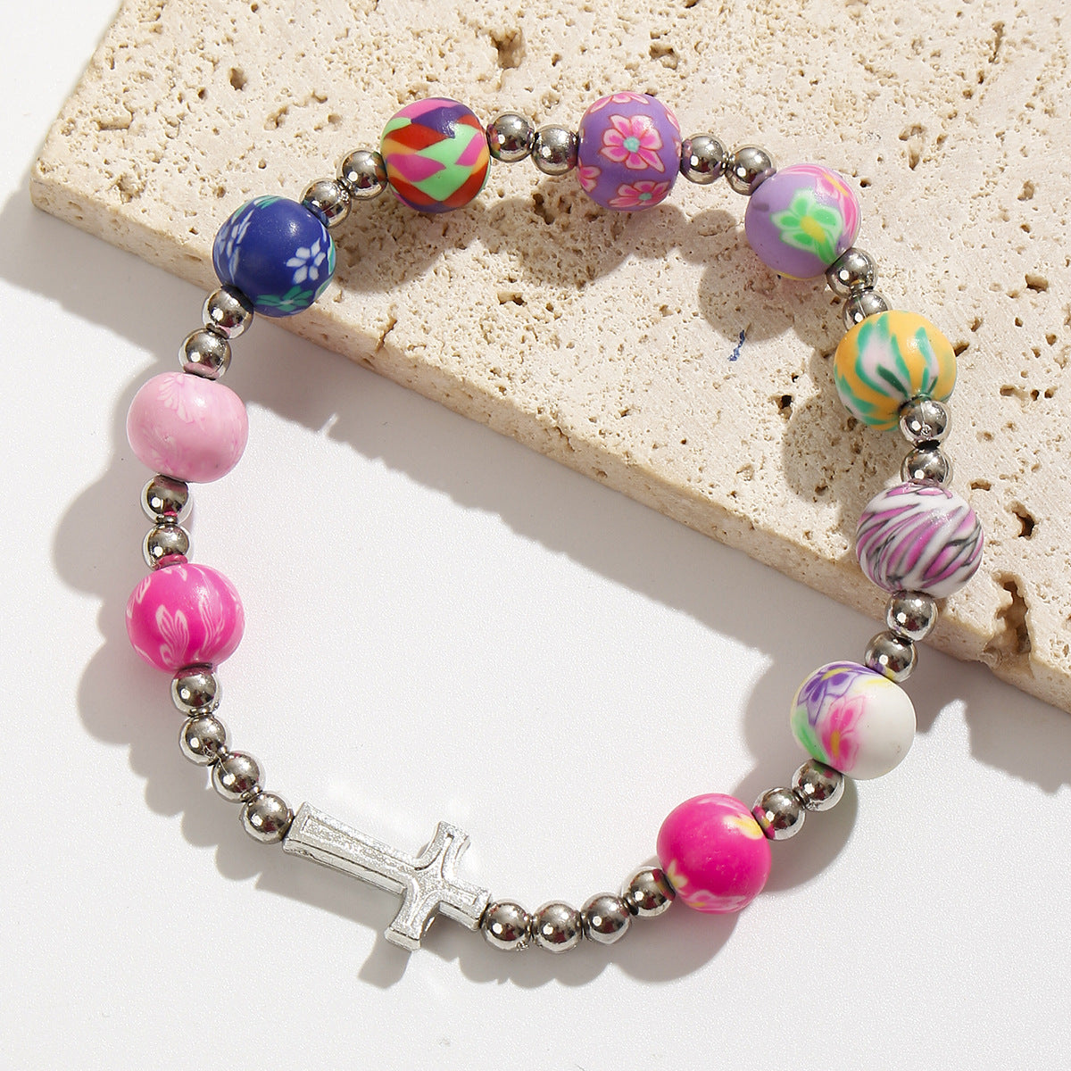 Wholesale 10pcsPolymer clay with alloy cross beaded bracelet