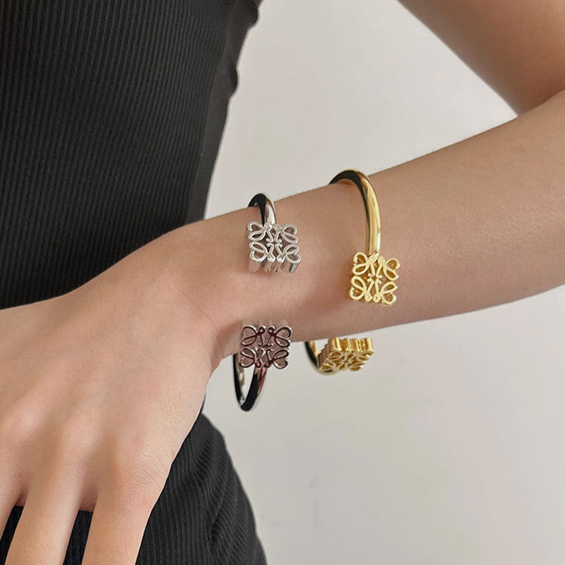 Wholesale Real Gold Electroplating Square Hollow Pattern Open-ended Bracelet