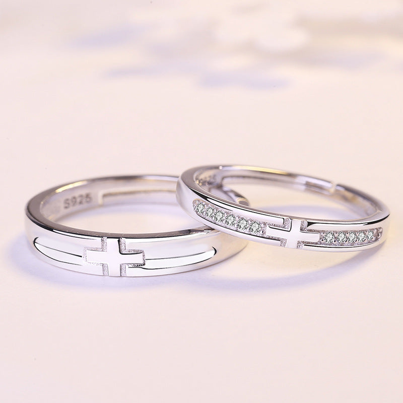 Wholesale S925 sterling silver cross couple ring female and male open ring