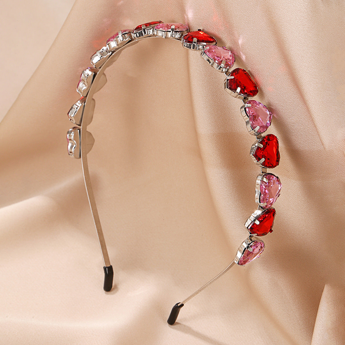 Wholesale Simple Fashion Environmental Protection Metal Material Peach Heart Gem Hair Hoop Women's Valentine's Day Mother's Day Hair Accessories