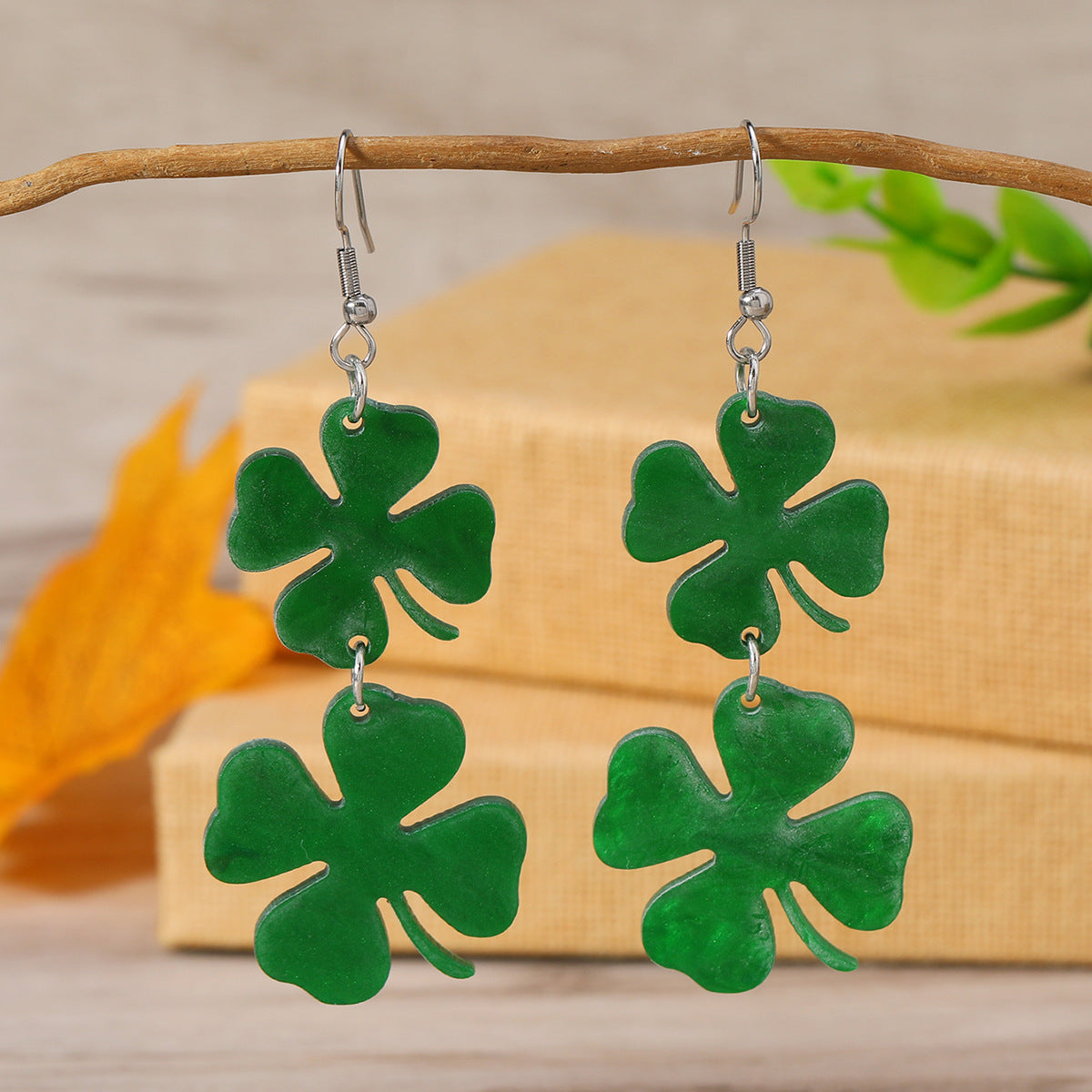 Wholesale St. Patrick's Day Carnival Cool All-match Green Acrylic Glitter Lucky Four-leaf Clover Ear Hook