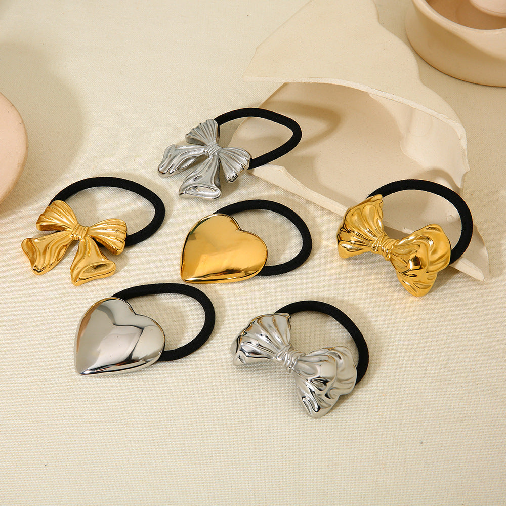 Wholesale Stainless Steel Metal High-grade Ins Rubber Band Love Bow Ponytail Hair Rope