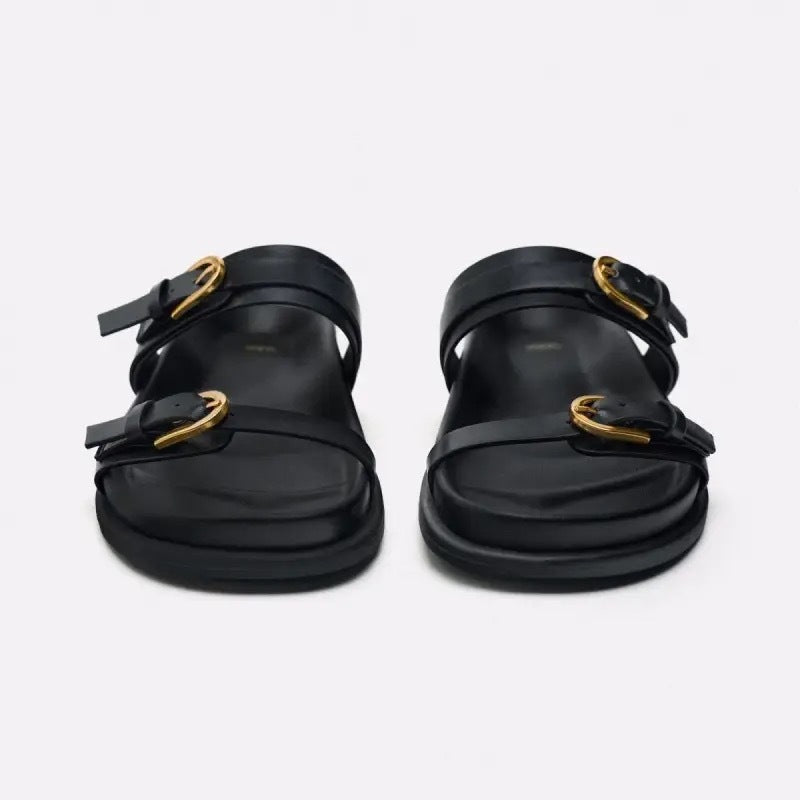 Wholesale Summer Women's Shoes with Rear Empty Black Buckle Breathable Fashion Flat Sandals