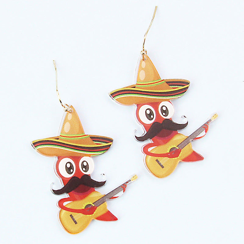 Wholesale two-dimensional hip hop Carnival chili Guitar Man Rock Western Denim acrylic earrings