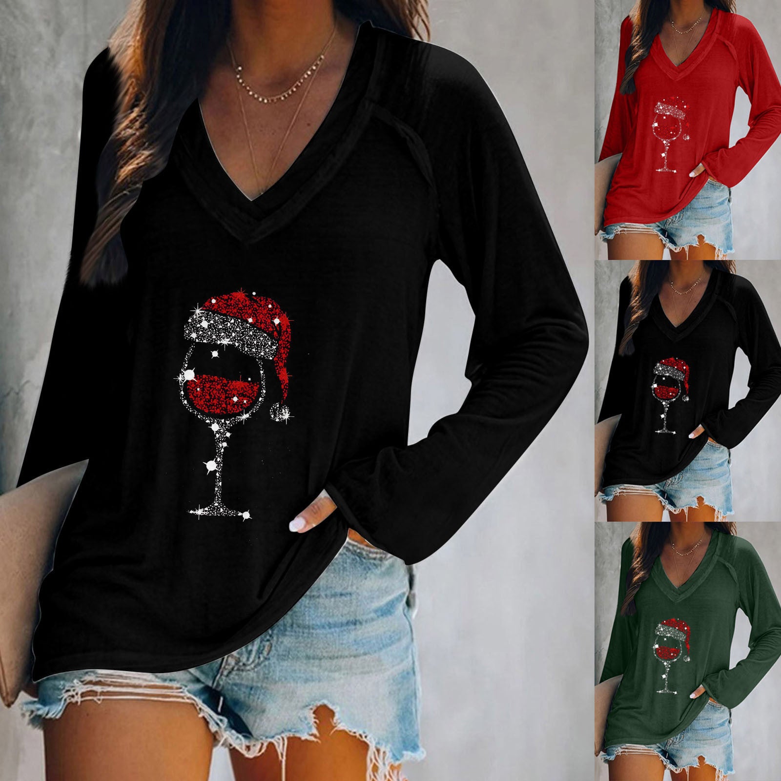Wholesale Valentine's Day Long Sleeve Women's Long Sleeve Cup Printing Long Sleeve V-neck T-shirt