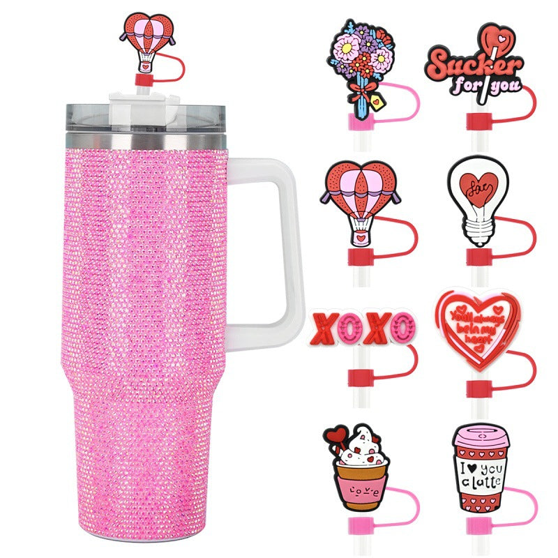 Wholesale Valentine's Day series straw cap dust plug 10mm reusable straw plug dust-proof straw cap