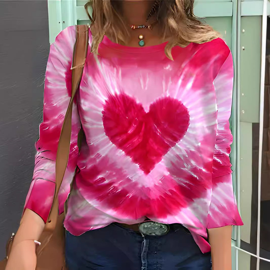 Wholesale Valentine's Day Women's Top Autumn and Winter Casual Printed Round Neck Long Sleeve T-Shirt