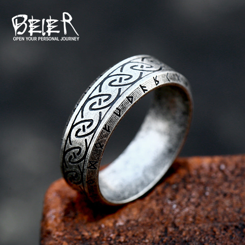 Wholesale simple titanium steel Nordic retro Viking letter stainless steel ring