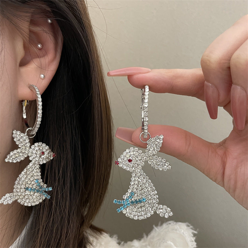 - 0635 silver flash diamond big rabbit earrings 925 silver needle