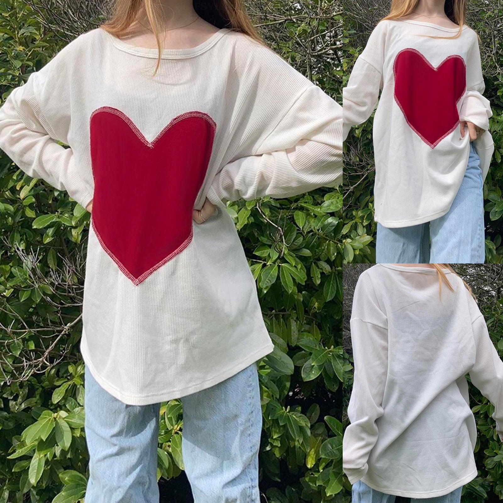 Wholesale Women's Long Sleeve Round Neck T-shirt Valentine's Day Loose Casual Pullover Top Spring and Autumn