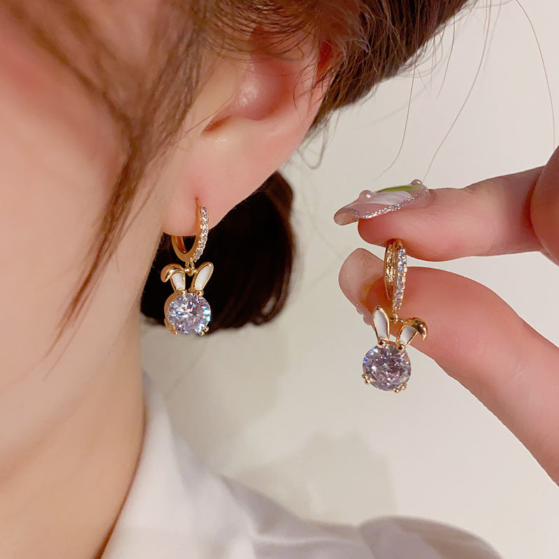Wholesale Women's Summer Personality Exquisite Super Flash Zircon Rabbit Ear Buckle Earrings