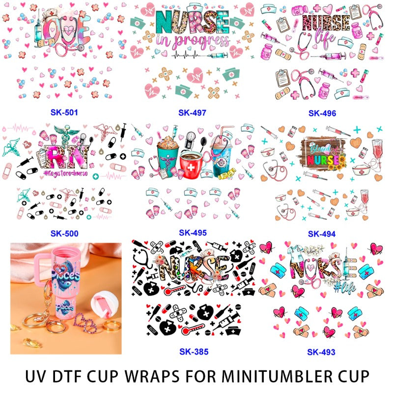 Wholesale 8pcs Pink Nurses' Day Mini Cup UV DTF Wraps