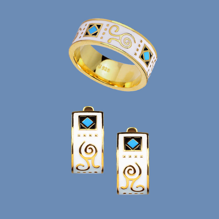 Anillos de cobre al por mayor Pendientes Conjunto de esmalte de dos