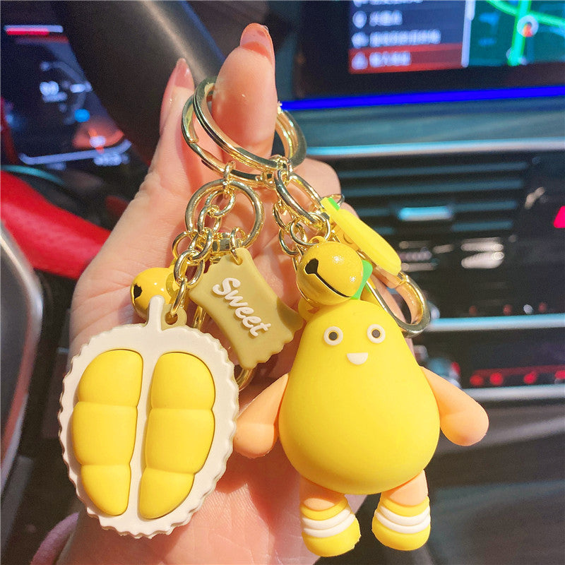 Fruta al por mayor durian mandarina aguacate pvc keychains