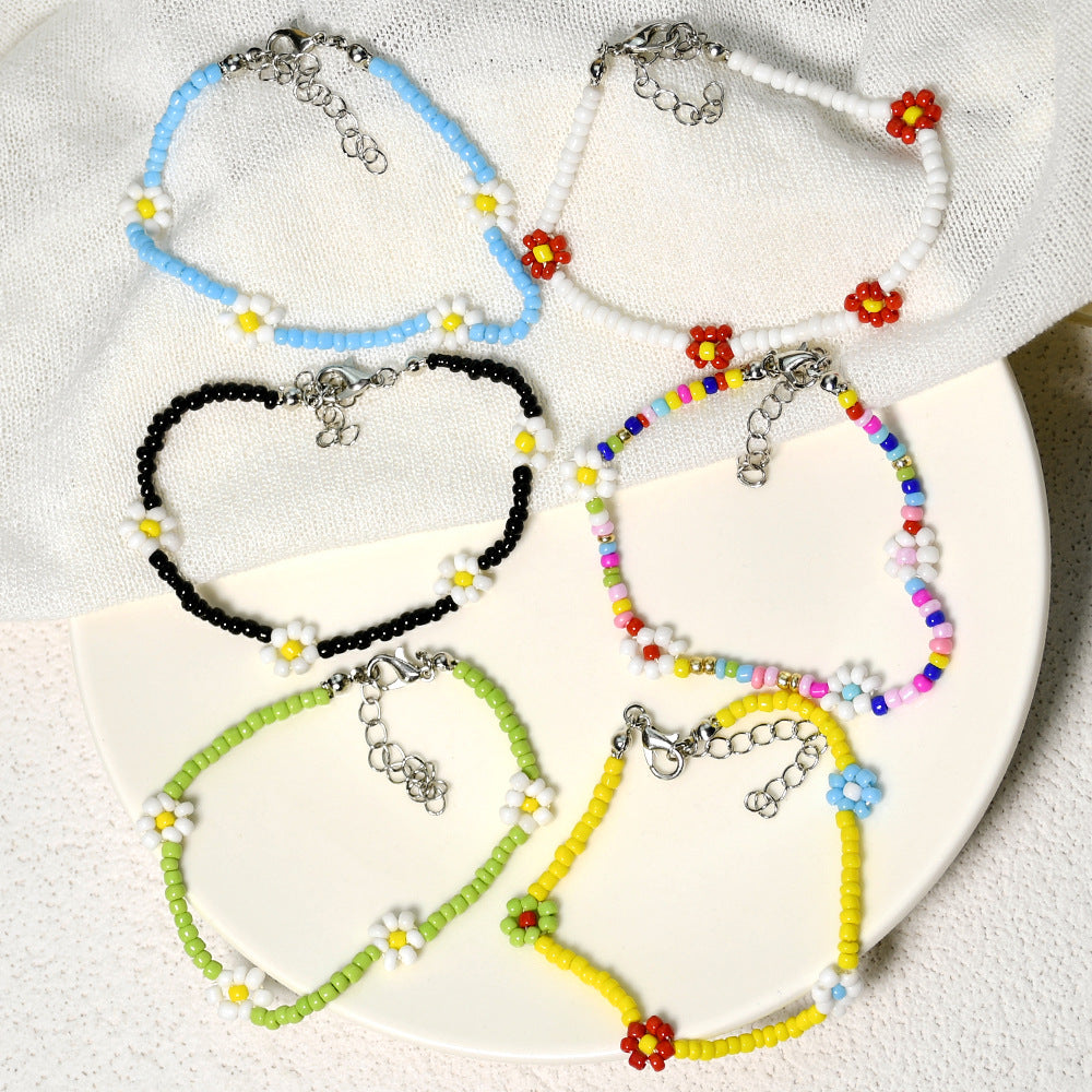 Pulsera de arroz con flores de margarita pequeña tejida a mano al por mayor pulsera de arroz