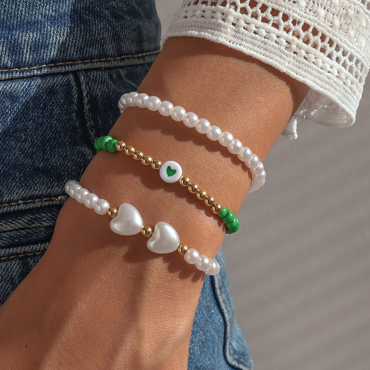 Brazalete del corazón del corazón geométrico de resina perla al por mayor