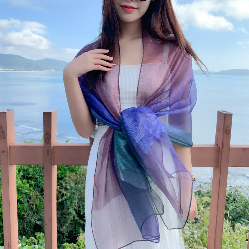 Bufanda de seda de gradiente larga de protección solar delgada delgada al por mayor