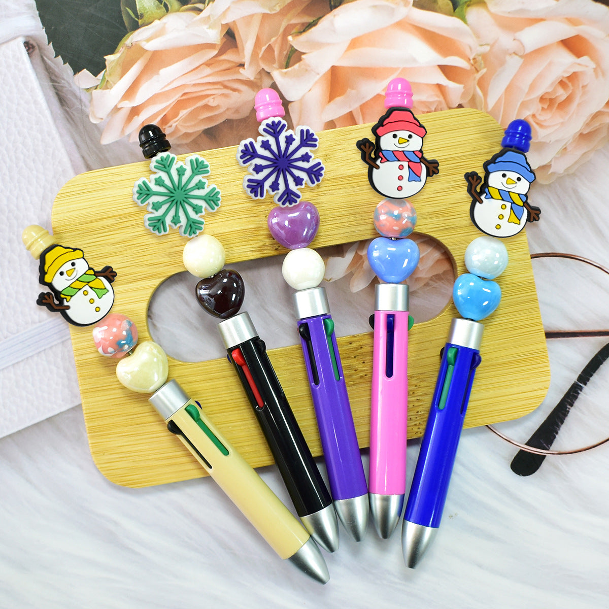 Wholesale Random 100pcs Snowman Snowflake Ballpoint Pen Beads