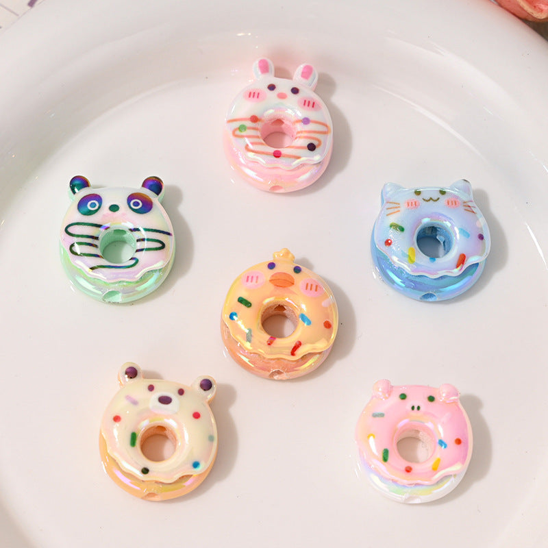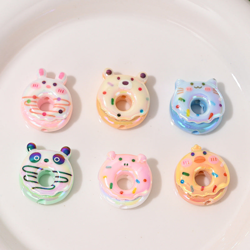 Wholesale 10pcs Cartoon Animal Rabbit Cute Plated Donut Food Toy Acrylic Beads