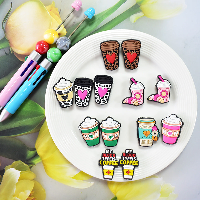 Wholesale Random100pcs Coffee Milk Tea Cup Beaded Lanyard Soft Rubber Focal Beads