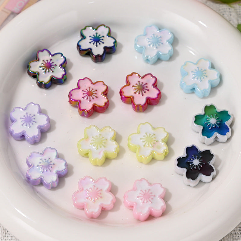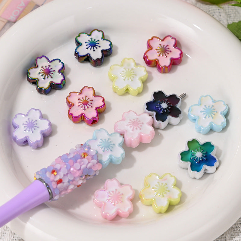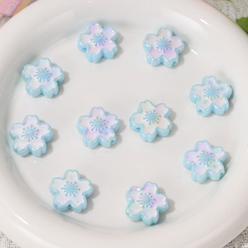 Wholesale 10pcs UV Colorful Double-sided Cherry Blossom Vertical Hole Acrylic Beads