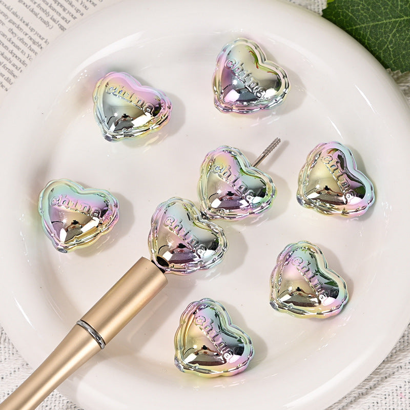 Wholesale 10pcs Electroplating Colorful Heart Acrylic Beads