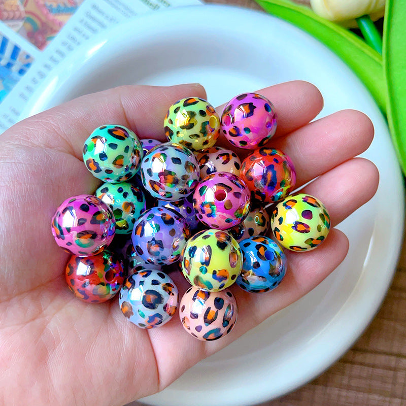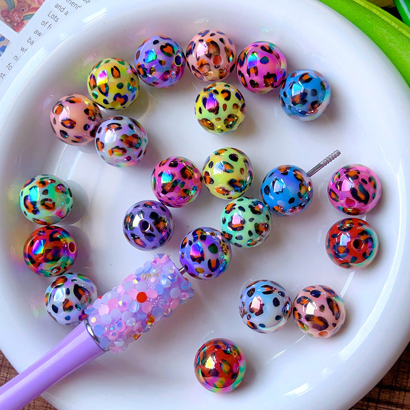 Wholesale 10pcs UV Plating Two-color Leopard Through Acrylic Beads