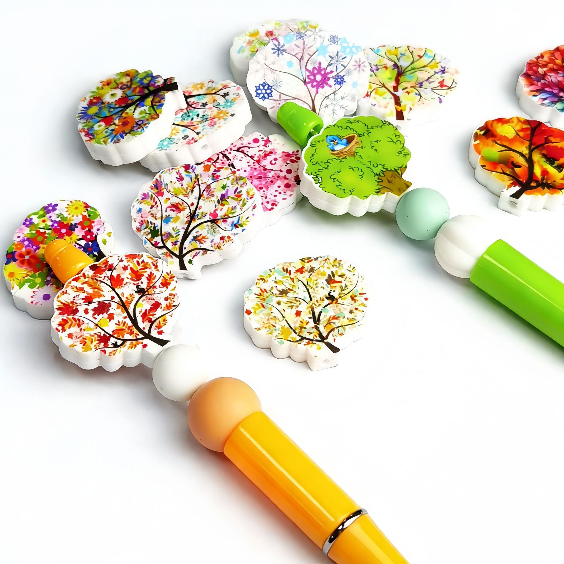 Wholesale 30pcs Colorful and diverse tree shaped flower printing Focal Beads