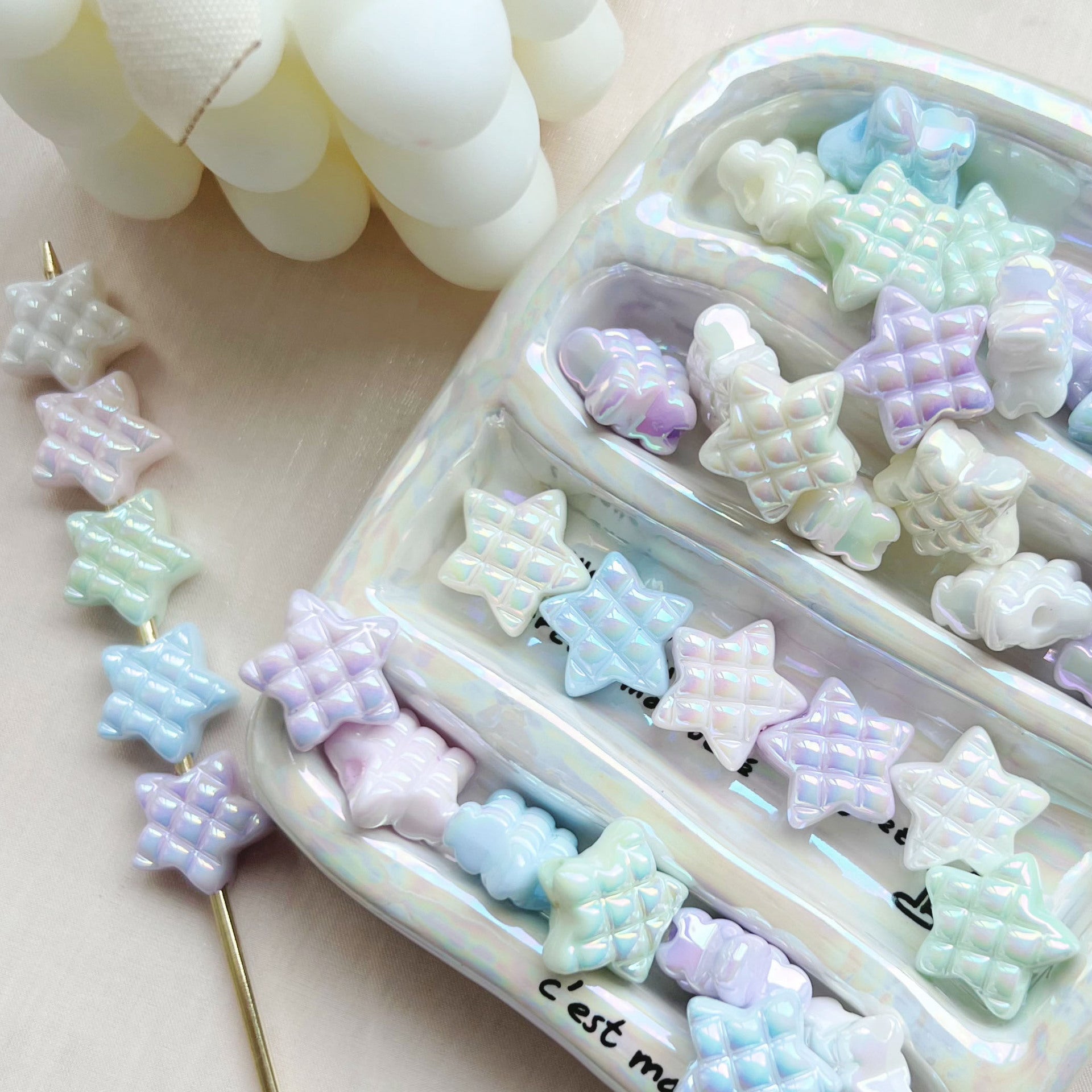 Wholesale 10pcs cream colored pentagram acrylic beads