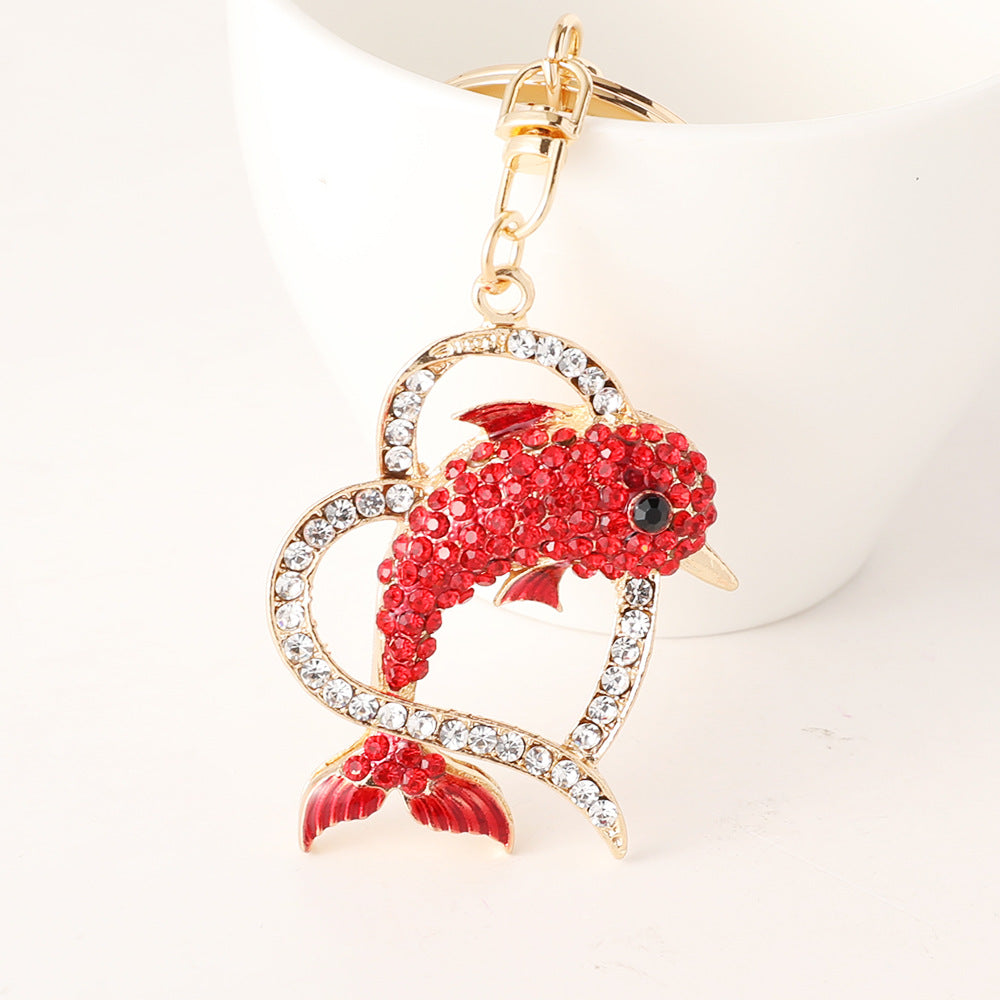 Wholesale Creative Ocean Diamond studded Love Dolphin Metal Keychain