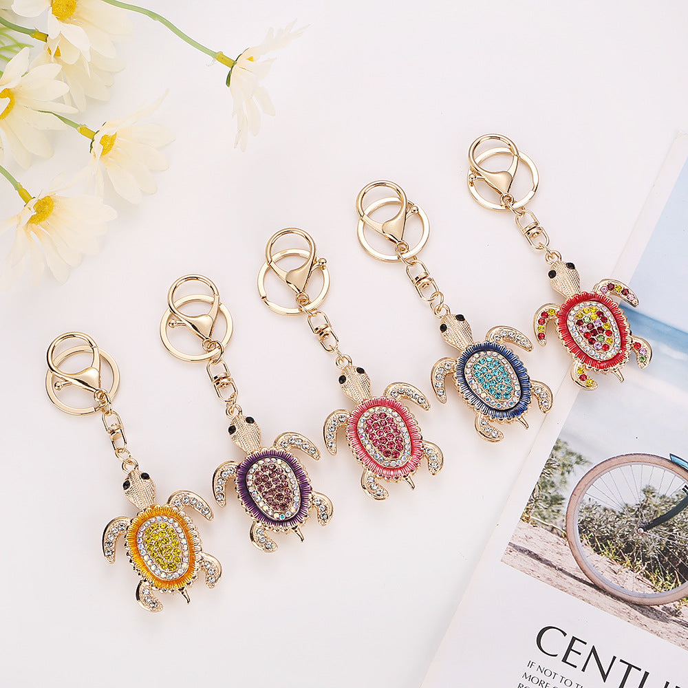 Wholesale Diamond studded turtle cute pendant metal keychain