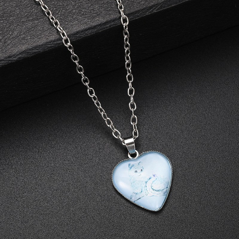 Wholesale Heart-shaped Crystal Cute Kitten Metal Necklaces