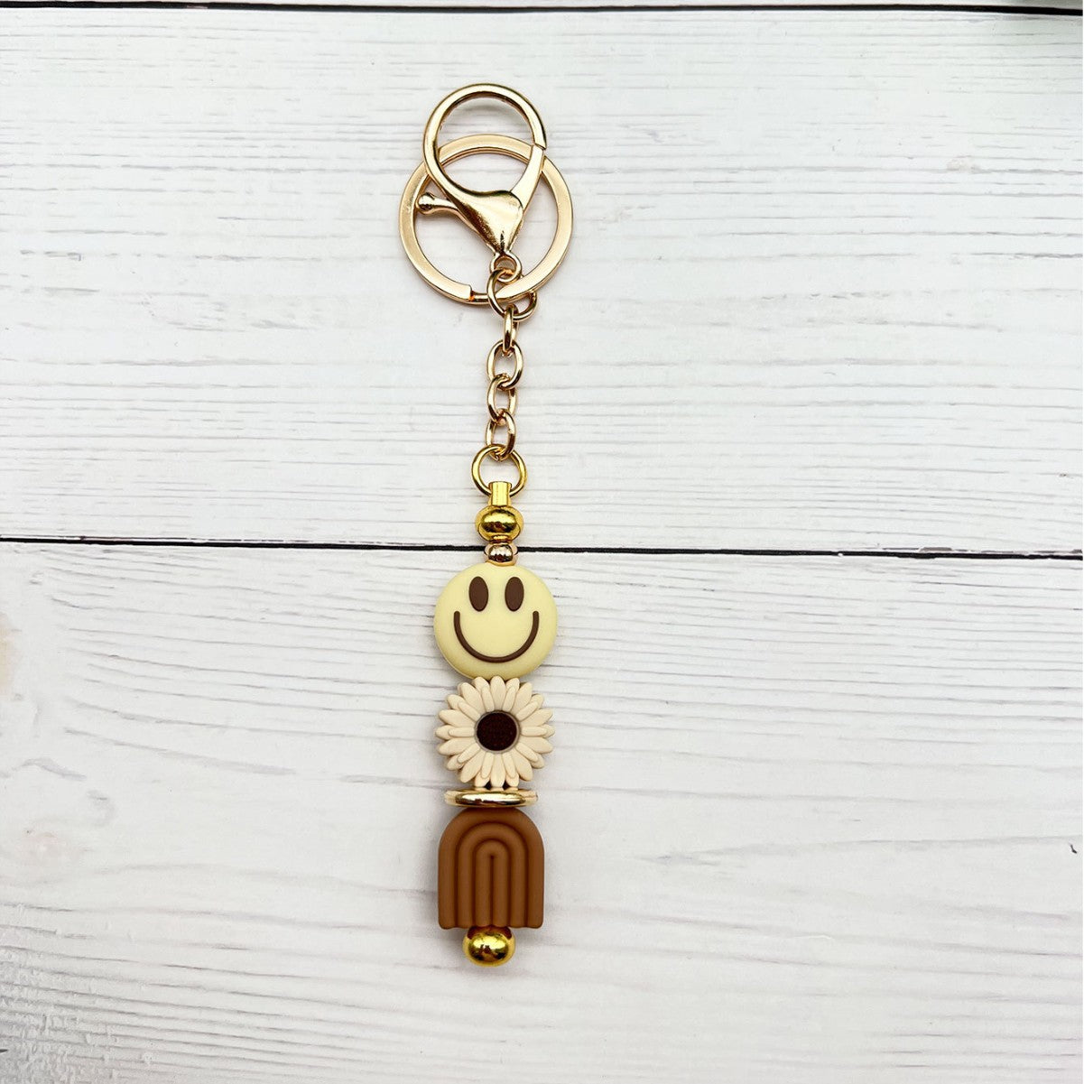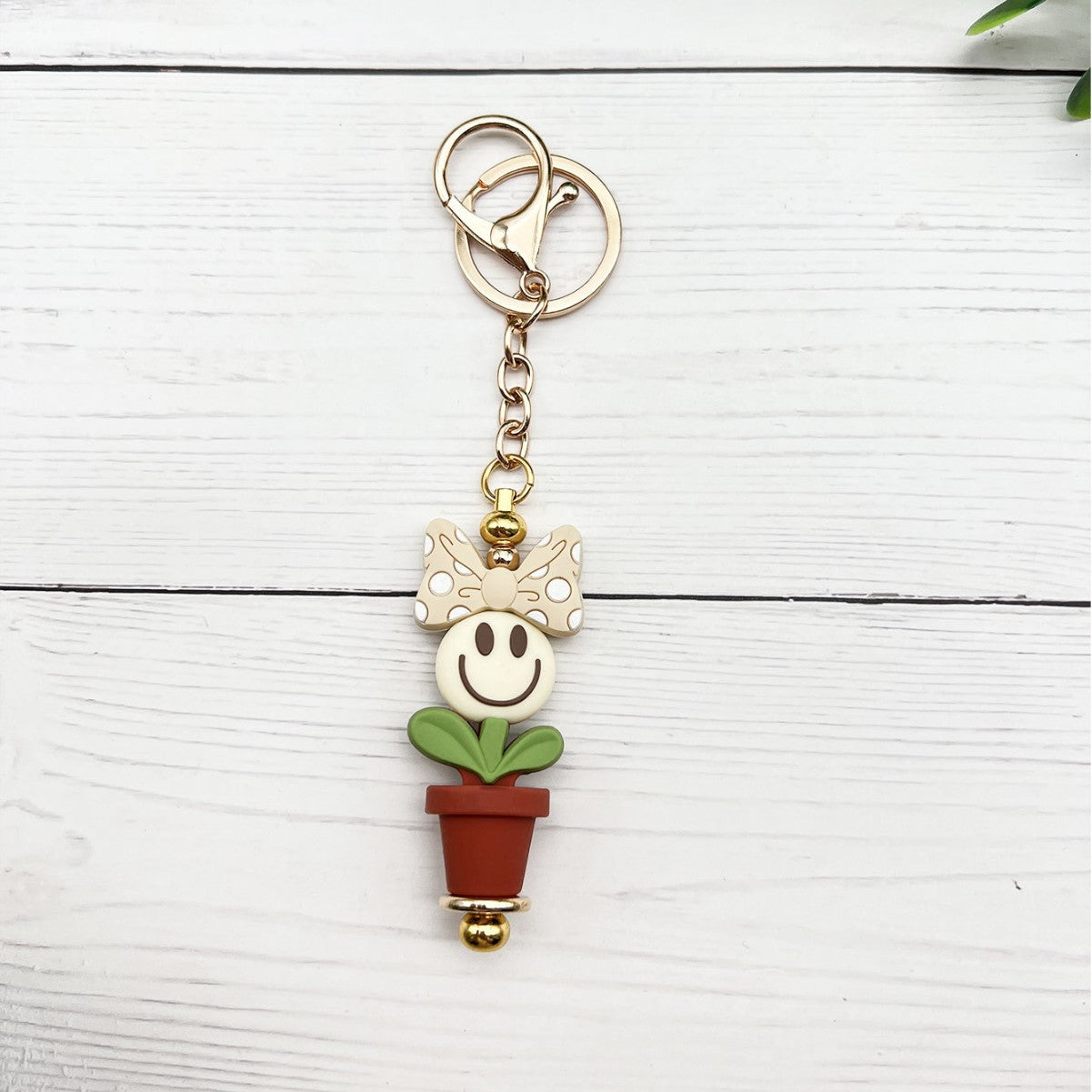 Wholesale New Cute Smiley Dot Bow Silicone Beaded Keychain Bag Key