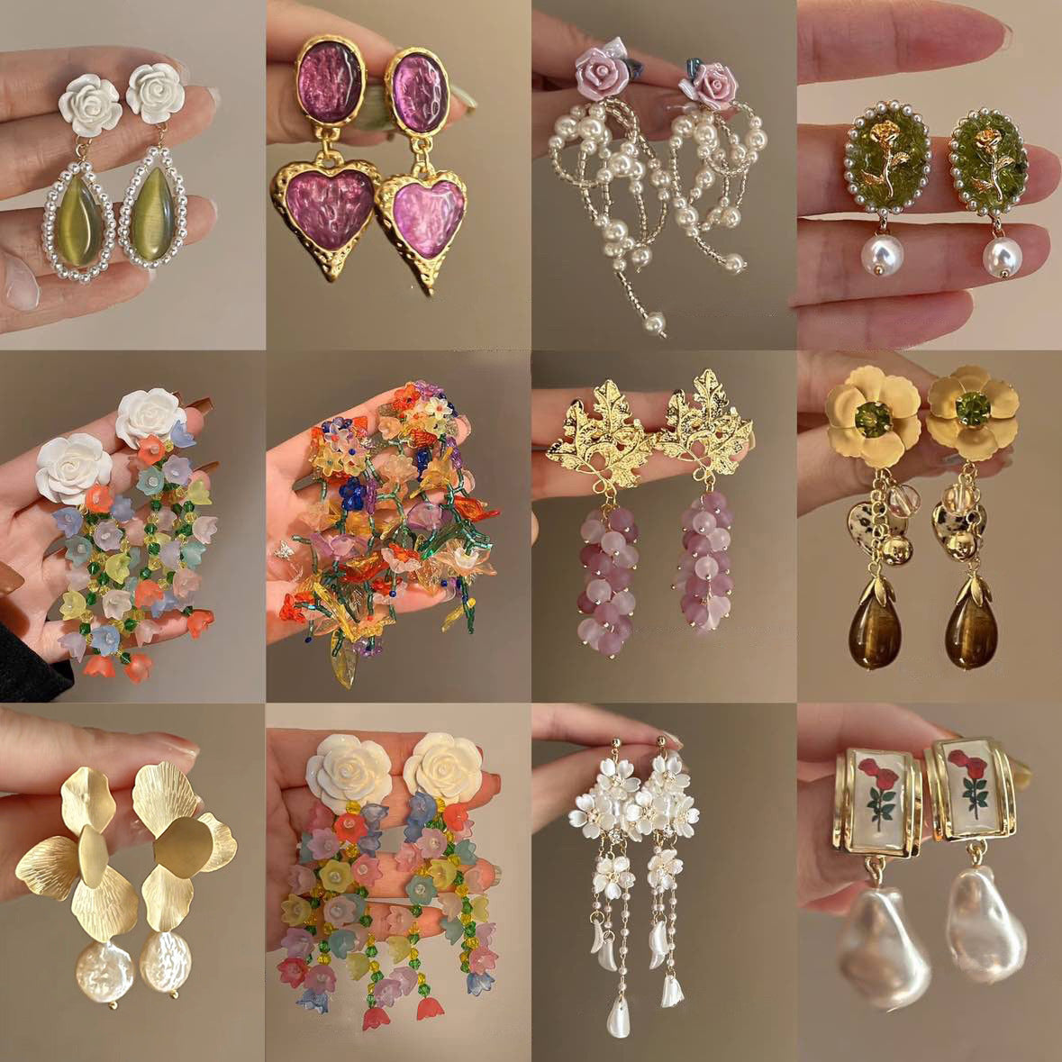 Wholesale Silver Needle Diamond Crystal Pearl Alloy Earrings