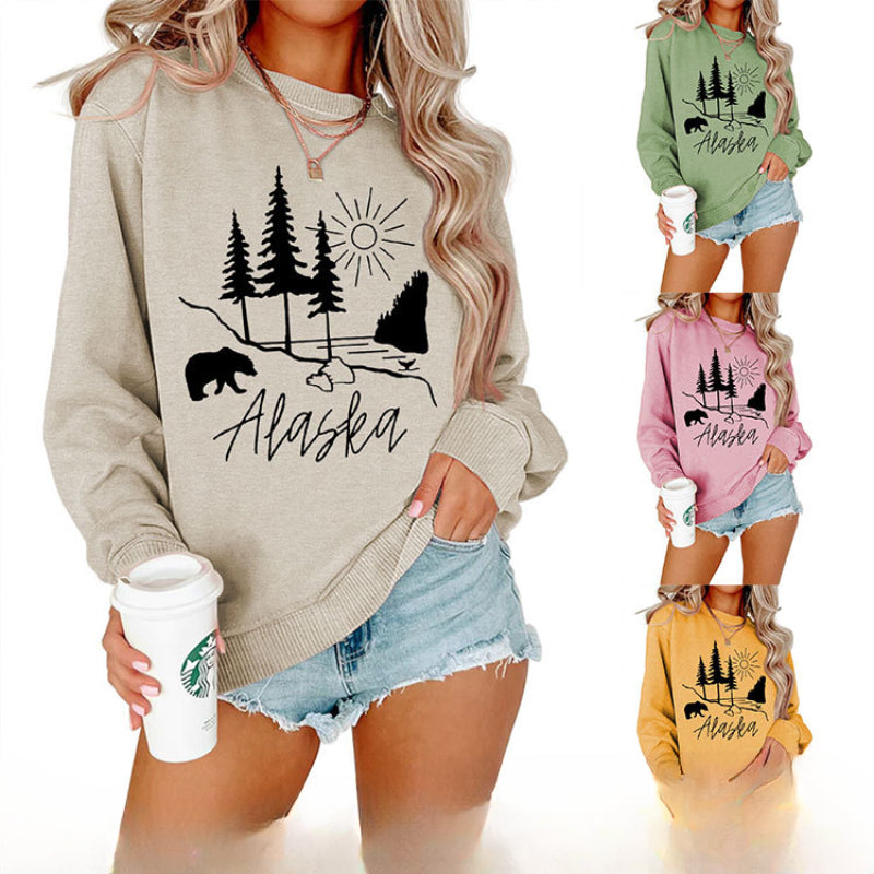 Wholesale Teddy Bear Printed Pullover Long Sleeved Casual Cotton Hoodies