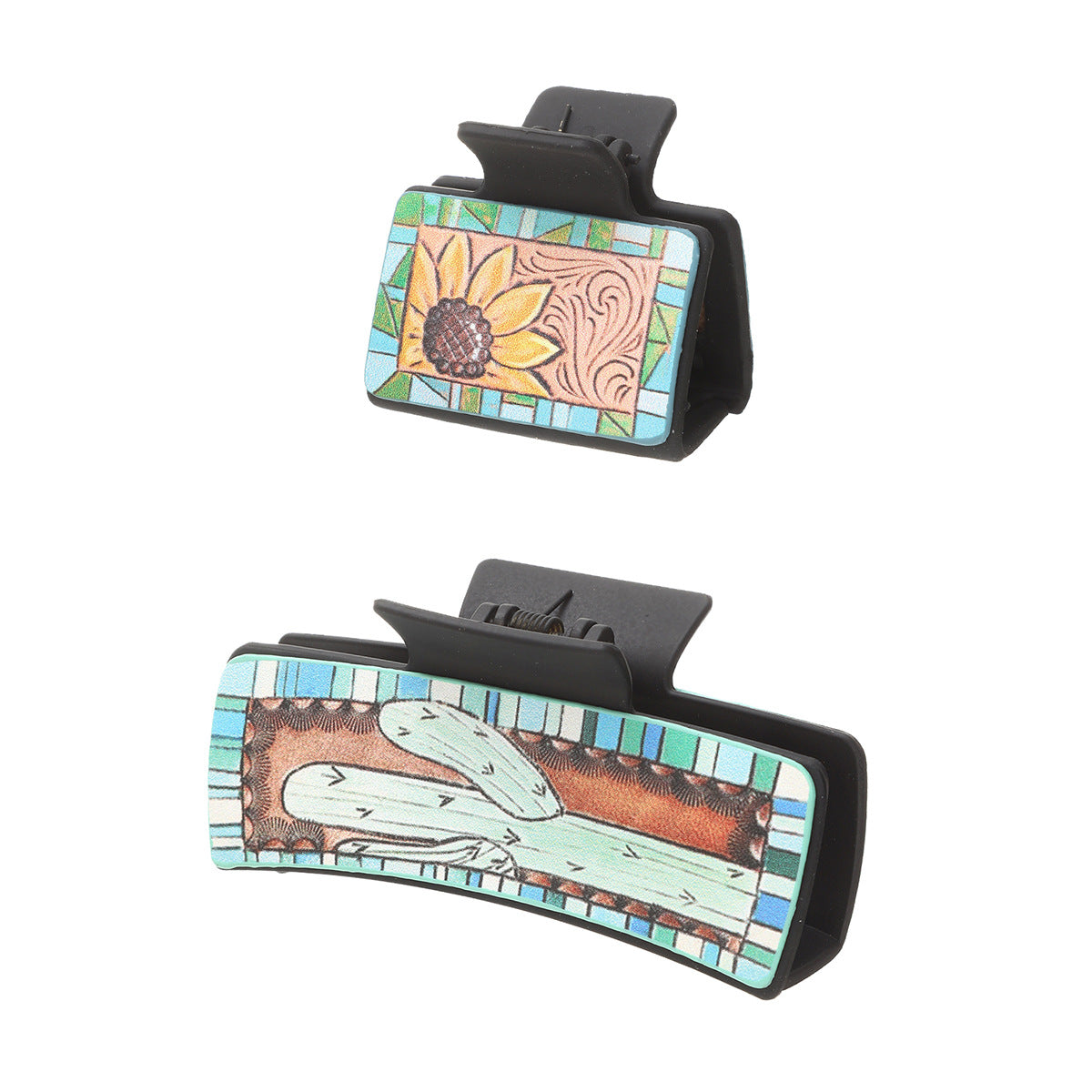 Wholesale Western Style Sunflower Cactus Leather Hairpin Combination suit Shark Clip