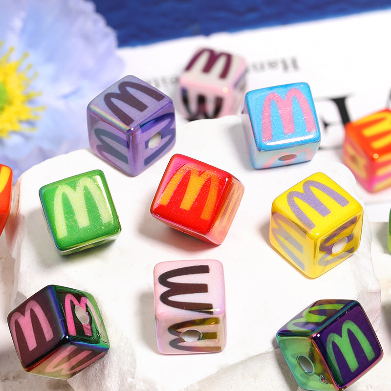 Wholesale 50pcs Acrylic Six sided Printed Square Colored Letter Blocks DIY Beads